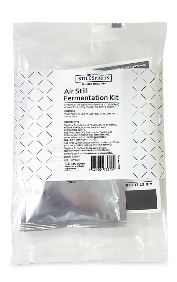 The Air Still Fermentation Kit contains the base ingredients required to make an 8 L wash for distilling a neutral spirit with the Still Spirits Air Still or Air Still Pro - just add sugar and water.