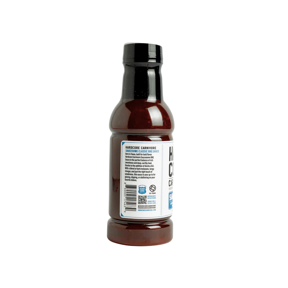 Born in Texas, built for bold flavor. Hardcore Carnivore Saucesome BBQ Sauce is the perfect balance of rich sweetness and deep, earthy heat, thanks to the addition of Ancho chili. With a blend of dark molasses, tangy vinegar, and just the right touch of smokiness, this sauce is your go-to for glazing, dipping, or slathering on your favorite dishes.